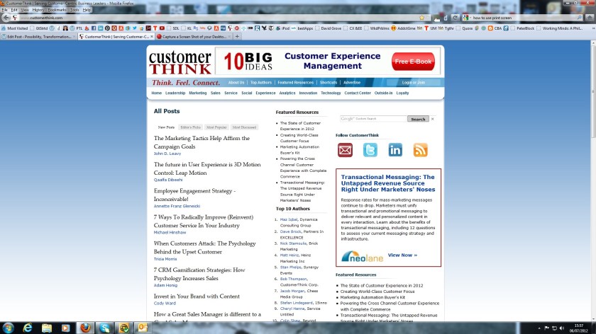 In September 2010 I chose to write – to write as a form of self-expression and to learn blogging by blogging.  I had no big plans, no dreams, just a commitment to share my authentic voice.  And to write a minimum of two posts a week.  Around March 2011, the Editor of CustomerThink noticed my blogging and invited me to syndicate my blog to CustomerThink.   Yesterday,  I took a look at the website and noticed something that took me by surprise and delighted me.  Take a look (click on the visual) and see if you notice what I noticed: